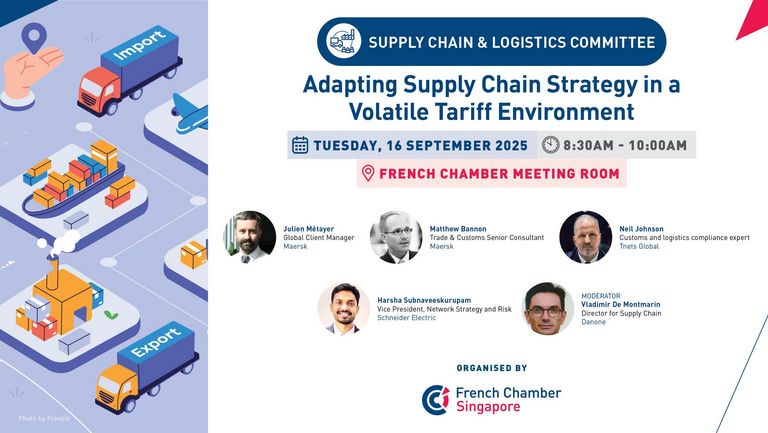 French Chamber of Commerce in Singapore • SingaporeDiscover how leading experts adapt supply chain strategies to navigate a volatile tariff landscape and maintain business resilience.