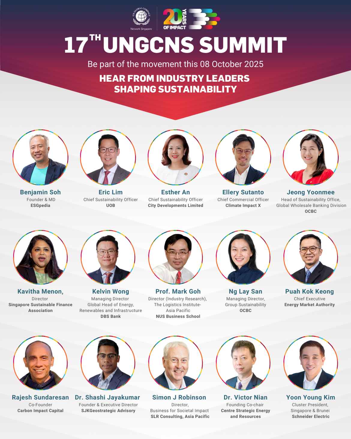 Join us at the 17th UNGCNS Summit, 2025, Singapore’s flagship corporate sustainability event, as we celebrate 20 years of impact.