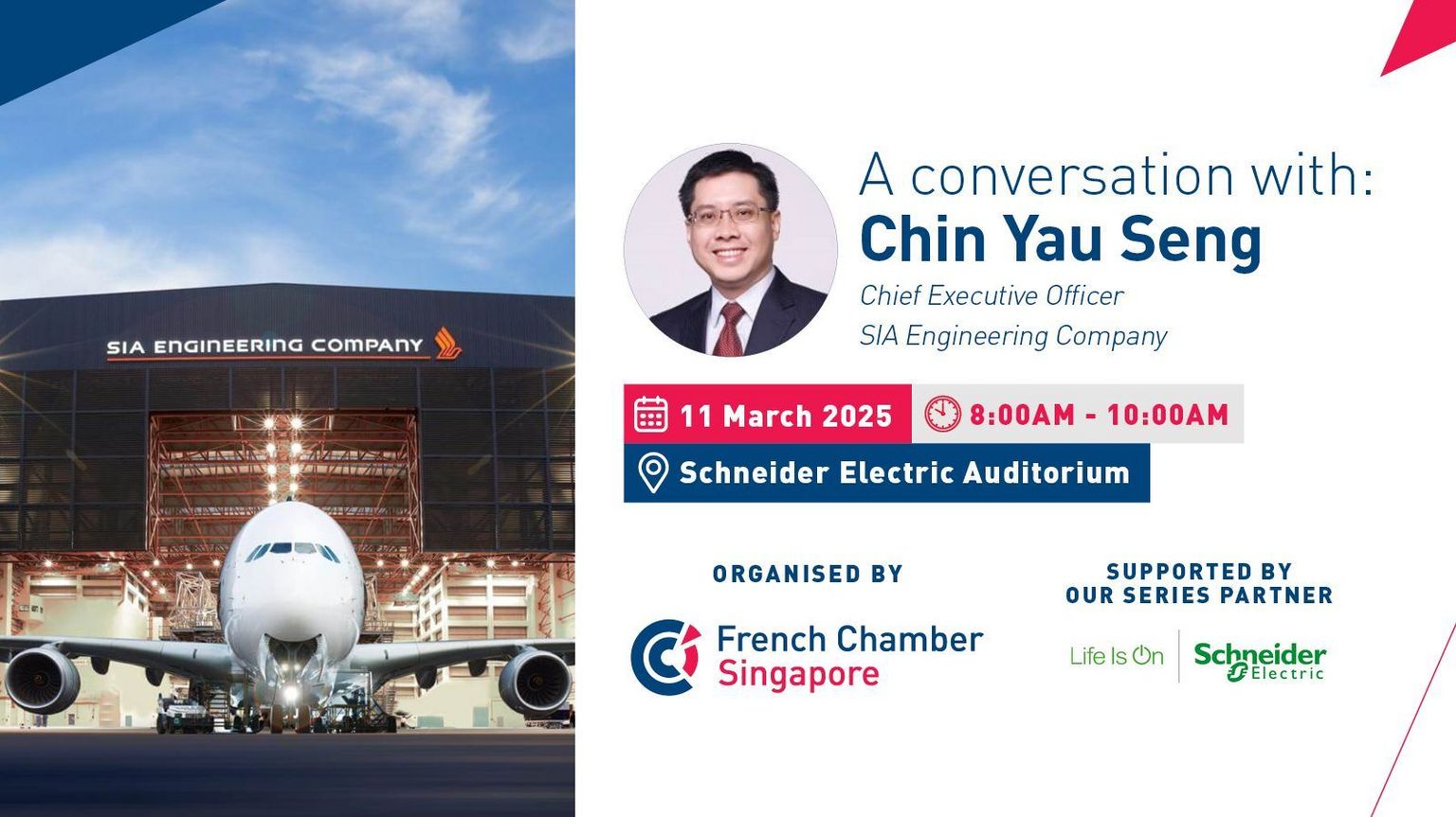 Join us for a closed-door discussion with Mr. Chin Yau Seng, CEO of SIA Engineering Company (SIAEC) to explore the company's regional footprint and the potential partnership with the French ecosystem.