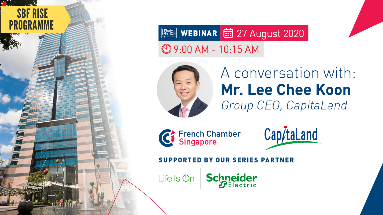 This WEBINAR offers a unique opportunity for an up-close conversation with Mr. Lee Chee Koon, Group CEO at CapitaLand.