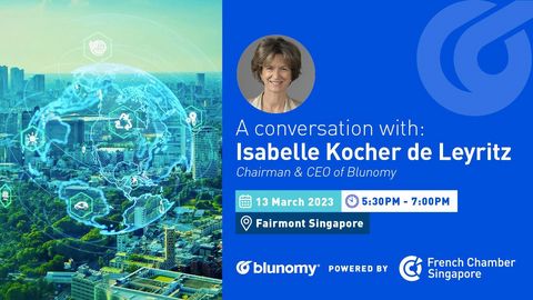 Blunomy and the French Chamber have the pleasure of organising an exclusive CEO Talk on Monday, 13 March at Fairmont Singapore. This event is a unique opportunity to meet and have a conversation with Mrs. Isabelle Kocher de Leyritz - Chairman and CEO of Blunomy.