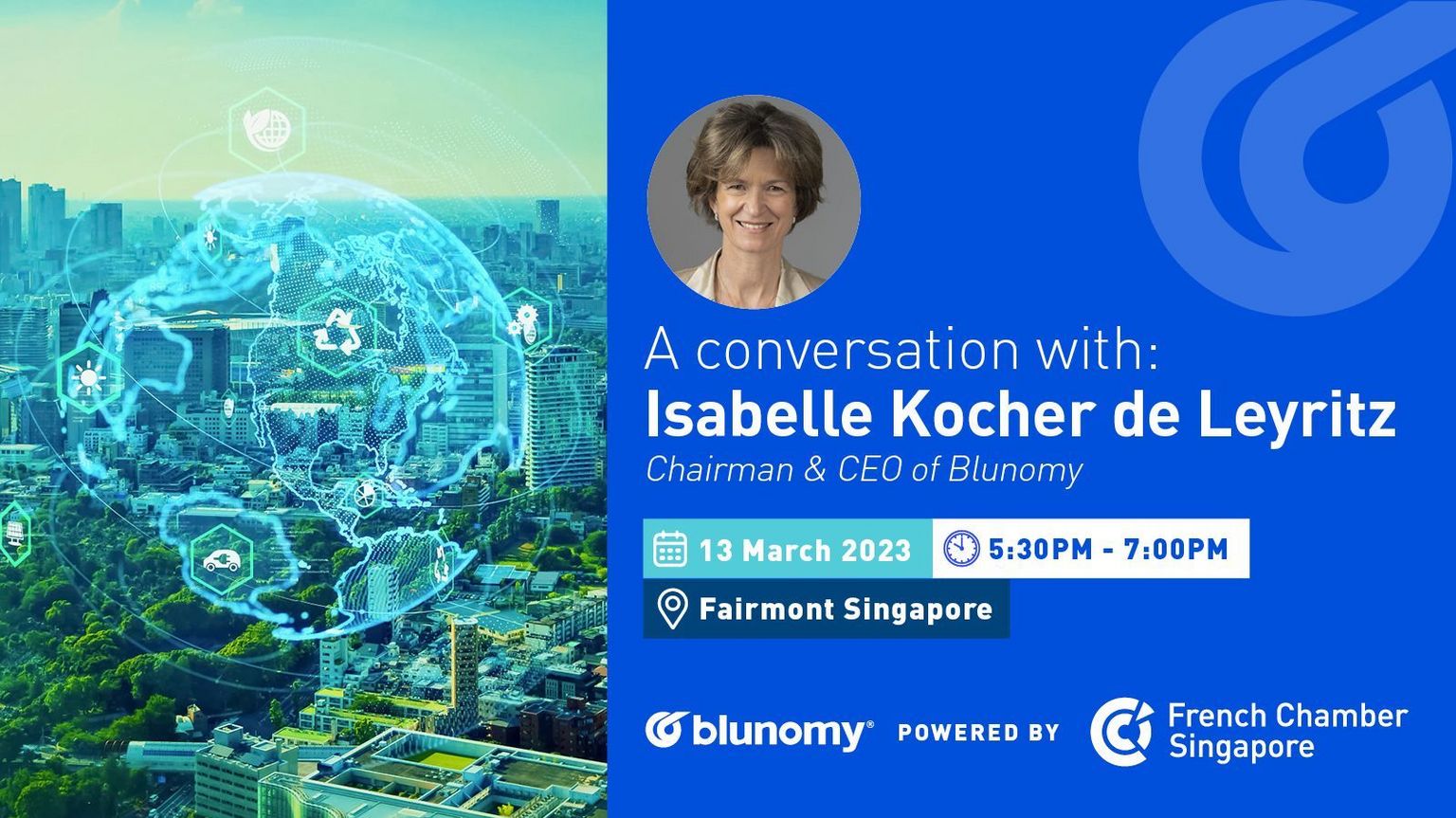 - BY INVITATION ONLY - A close-door discussion with Mrs. Isabelle Kocher de Leyritz, Chairman and CEO of Blunomy
