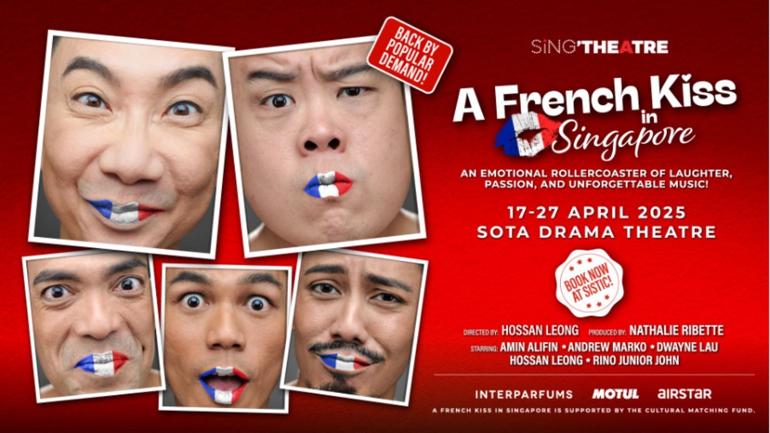 Directed by Hossan Leong, the musical will transport you through an emotional rollercoaster, with unforgettable numbers like Seasons in the Sun, Beyond the Sea and I Love You Me Neither. Whether you're a lifelong Francophile or simply a lover of great music, A French Kiss in Singapore promises a one-of-a-kind evening of entertainment.