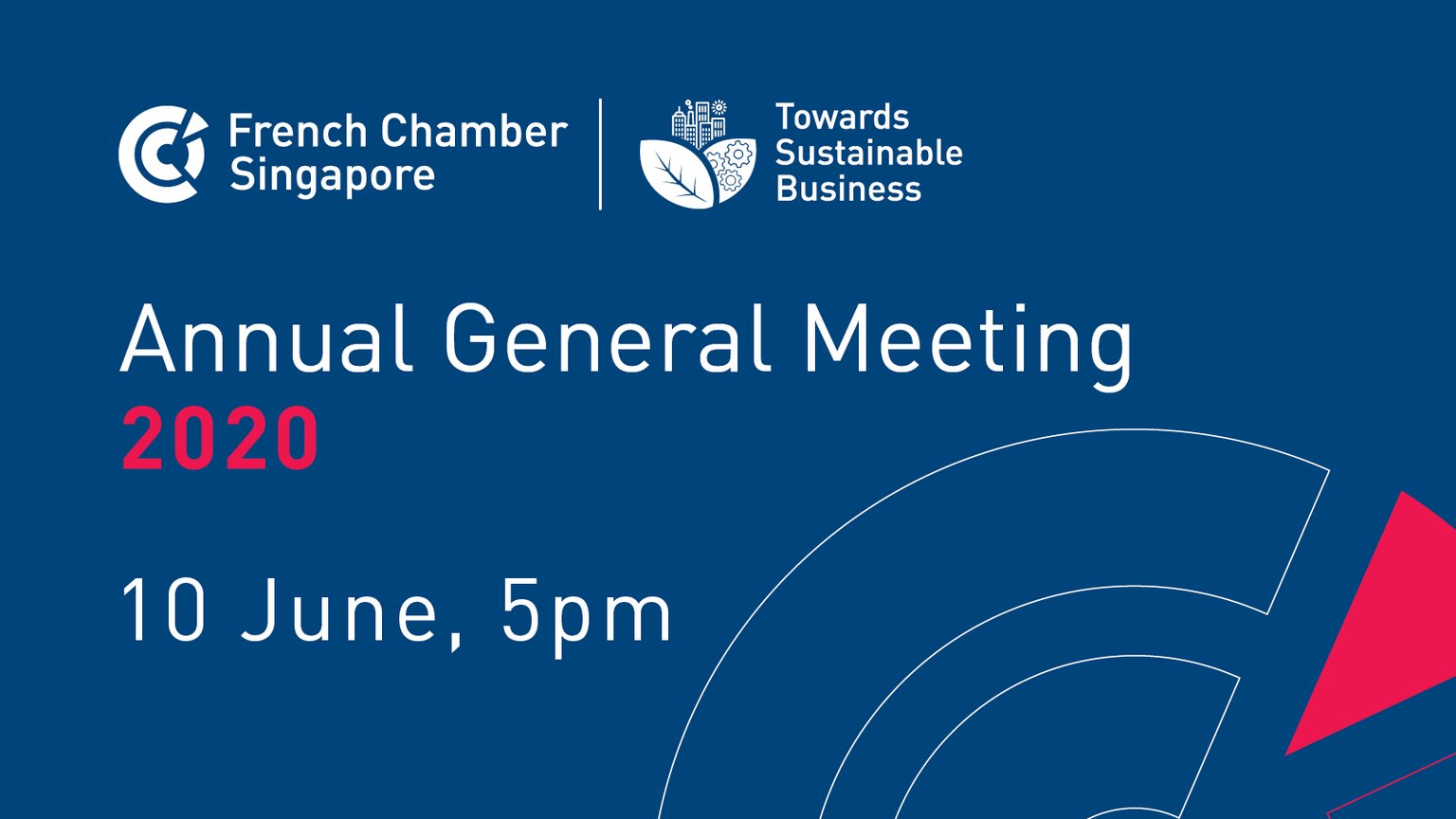 The French Chamber of Commerce in Singapore is glad to inform you that its Annual General Meeting will be held on Wednesday 10 June 2020 from 5.00pm to 6.00pm by video conferencing.