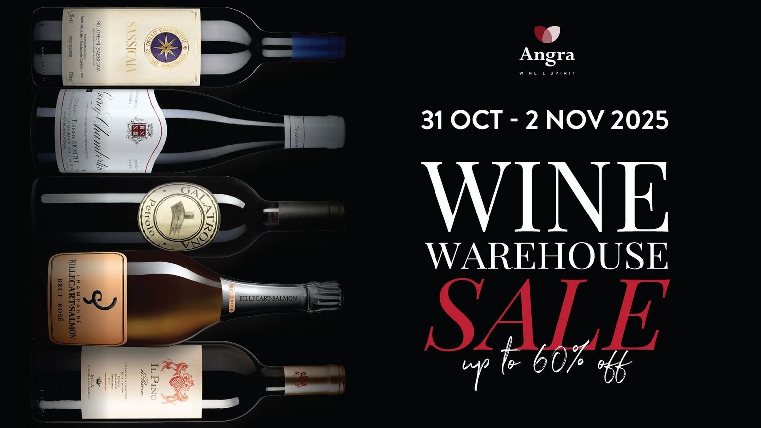 ANGRA Wine & Spirit welcomes you to our annual Warehouse Sale, happening from 31st October to 2nd November 2025.