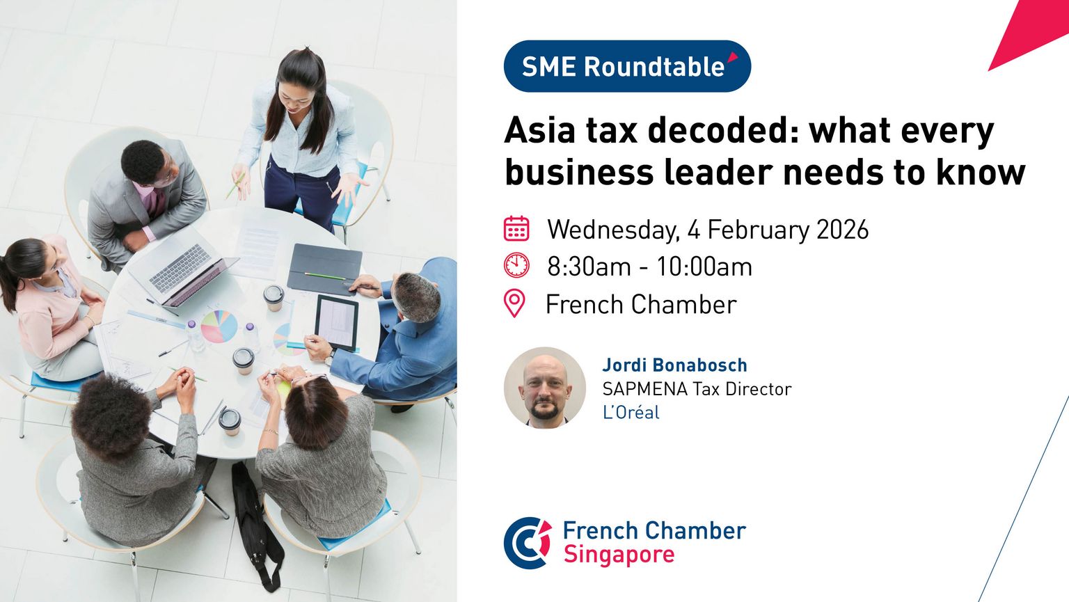 This session, led by Jordi Bonabosch, SAPMENA Tax Director at L'Oréal, is designed to provide you with critical insights into the potential tax complexities and common "pain points" you might encounter when expanding into or operating within this vibrant region. In a concise presentation, we will highlight key tax risks and help you understand the real costs of doing business abroad, enabling you to make smarter, more informed decisions for your company's international journey.
