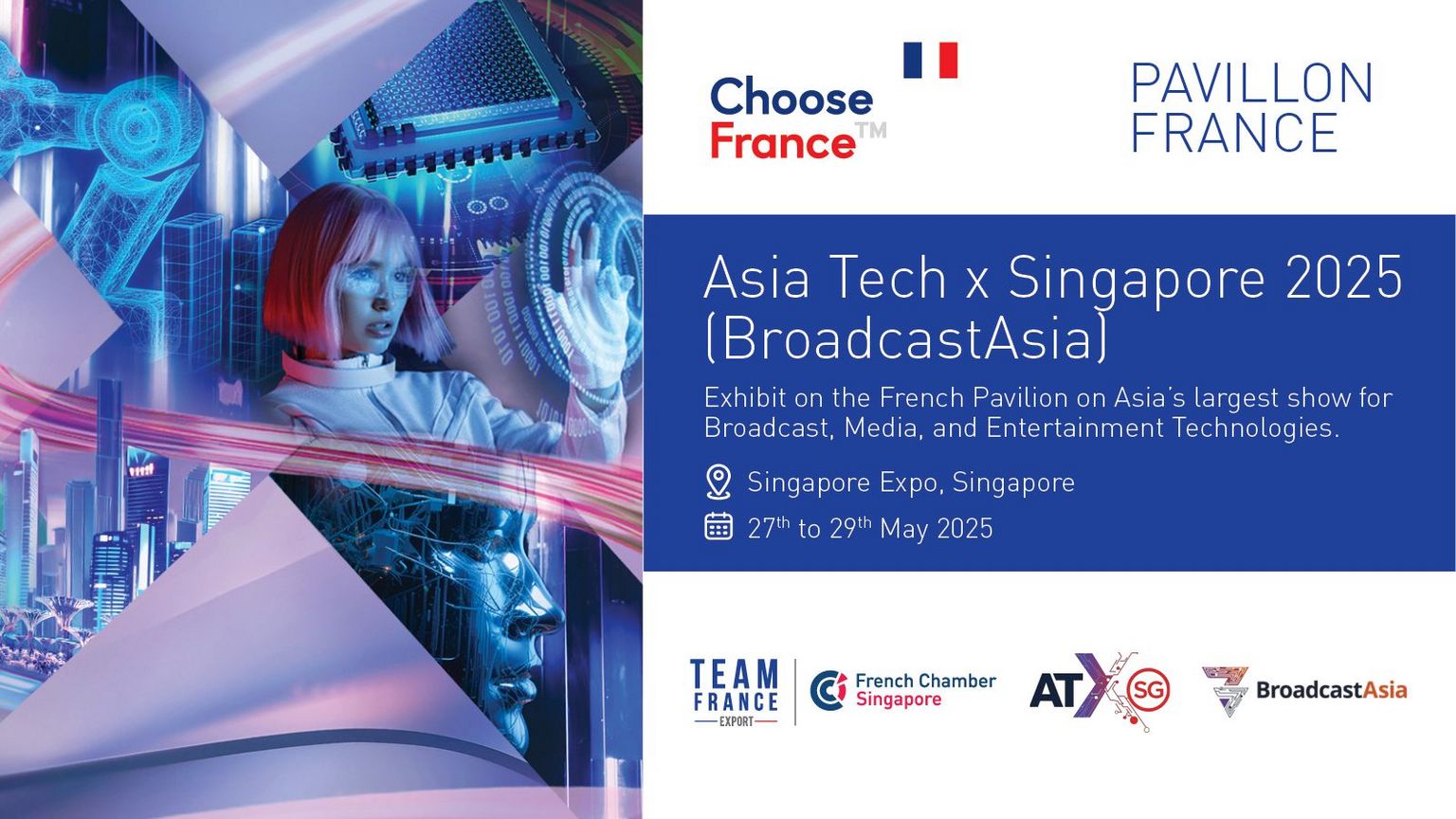 This year again, the French Chamber of Commerce in Singapore - Team France Export will organize the Pavilion France on BroadcastAsia from May 27th to 29th May at Singapore EXPO exhibition centre. The Pavilion is located in Hall 5 (5G1-3).
