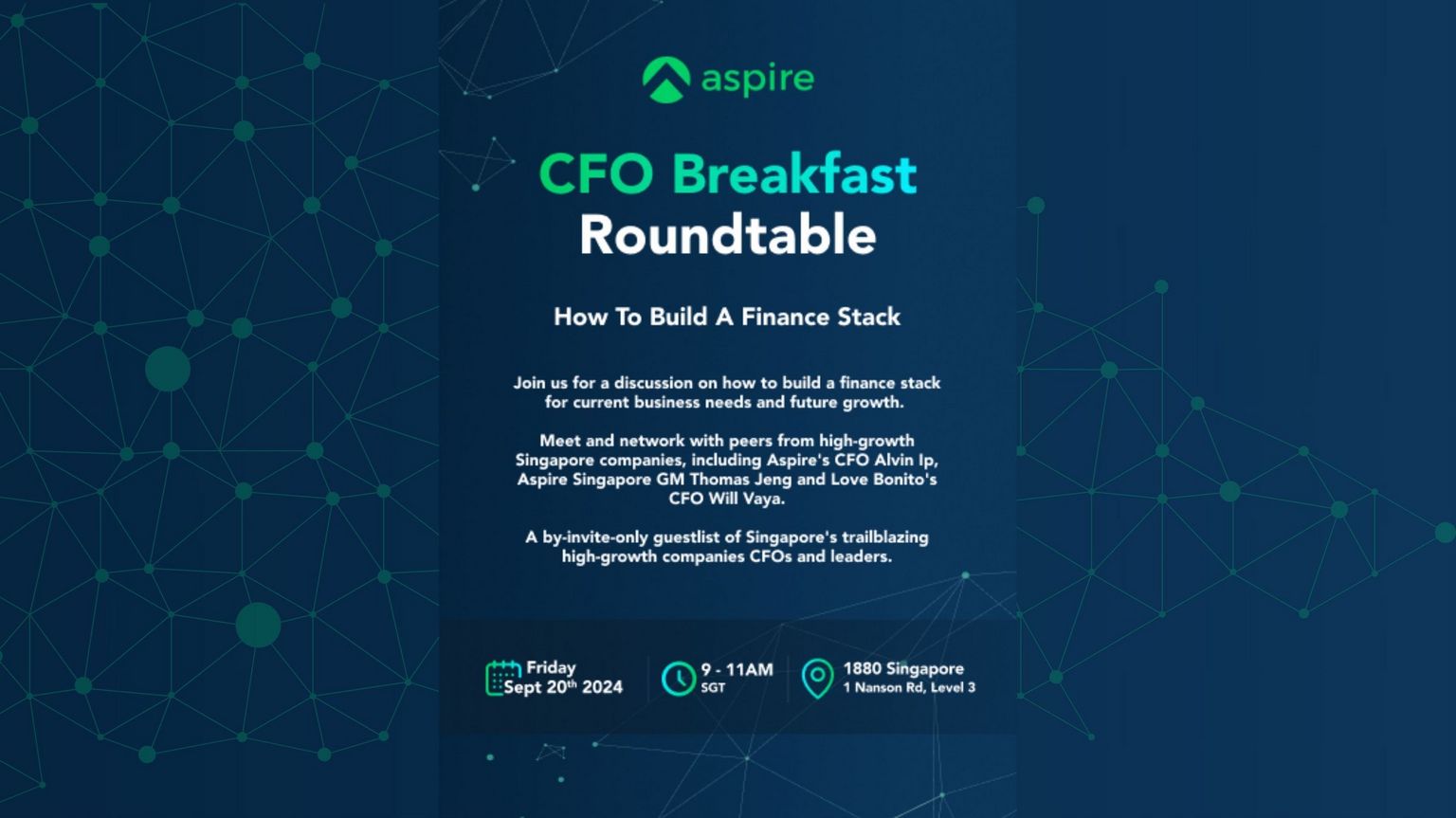 The by-invite-only event brings together Singapore's trailblazing high-growth startups’ CFOs and leaders.