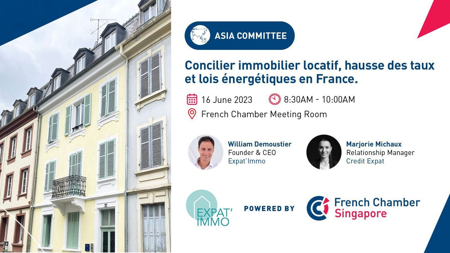 La Chambre de Commerce à Singapour est ravie de vous convier à une conférence sur l'immobilier locatif français pour les expatriés.