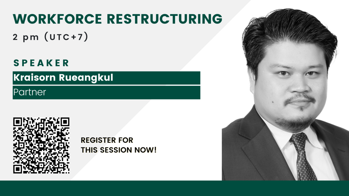 Employers are experiencing increasing operational and financial challenges. In 20 minutes, our labor expert, Kraisorn Rueangkul (Partner), will show you how minimize labor challenges and avoid unnecessary labour disputes in compliance with local laws. He will discuss practical steps and highlight noteworthy considerations when implementing workforce restructuring options that may be available to employers in Thailand.