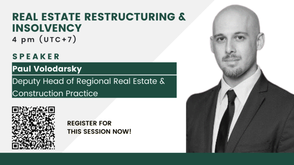 The real estate sector has also suffered tremendously due to the COVID-19 pandemic while hotels or developers are trying to hold on and survive as best they can. In 20 minutes, our expert, Paul Volodarsky (Deputy Head of Regional Real Estate and Construction Practice), will delve deep into the current market situation and share practical advice to those seeking viable restructuring options.
