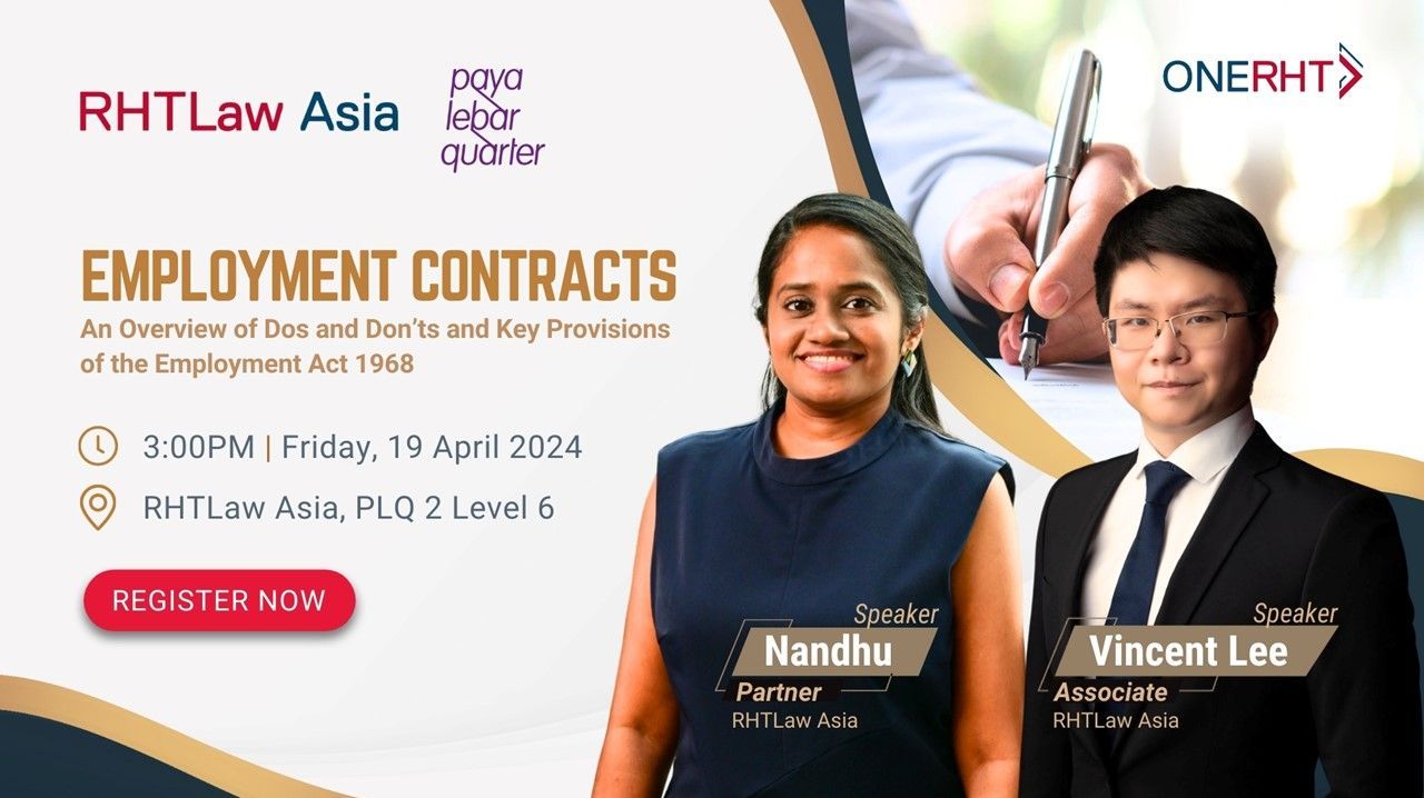During the sharing session, we will briefly discuss common key employment terms, such as employee overtime entitlements, statutory leave entitlements, notice periods and termination, and the hot topic of non-compete clauses.