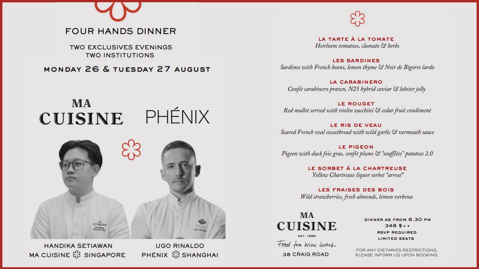 Four Hands Dinner - 26 & 27 August - Ma Cuisine - Phénix