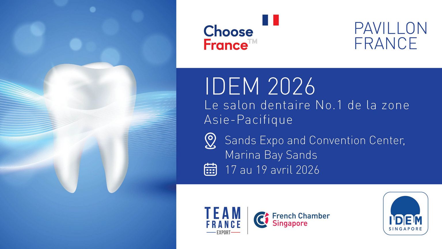 The French Chamber of Commerce in Singapore is proud to once again organize the French Pavilion at IDEM, the leading dental exhibition and conference in the Asia-Pacific region. The 2026 edition will take place from 17 to 19 April at the Marina Bay Sands Convention Center.
