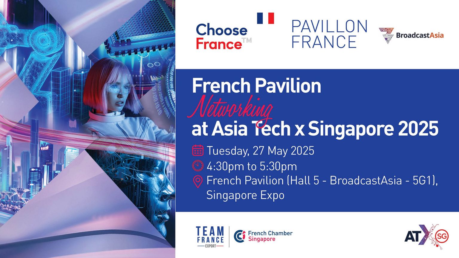 As part of our initiatives for Asia Tech x Singapore 2025, we are excited to invite you to a Networking Event at the French Pavilion during BroadcastAsia 2025, one of Asia’s leading tech trade shows.