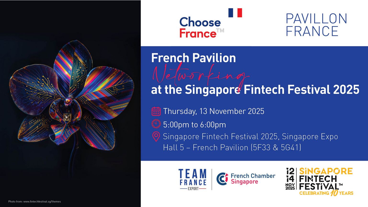 As part of Singapore FinTech Festival 2025, the French Chamber of Commerce in Singapore will be hosting a friendly networking drink on the French Pavilion.