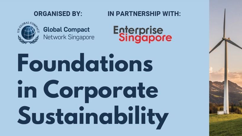 Global Compact Network Singapore's Foundations in Corporate Sustainability is an introductory course for working professionals, which will provide an overview of global and regional sustainability trends and an understanding of how sustainability can be applied to improve business practices and enhance existing work functions. Spanning environmental, social and governance (ESG) topics. This 2.5-day course is part of the ESP Sustainability Course series designed to provide foundational knowledge, practical guidance, as well as tools and resources to help companies, especially SMEs, to jumpstart their sustainability journey.