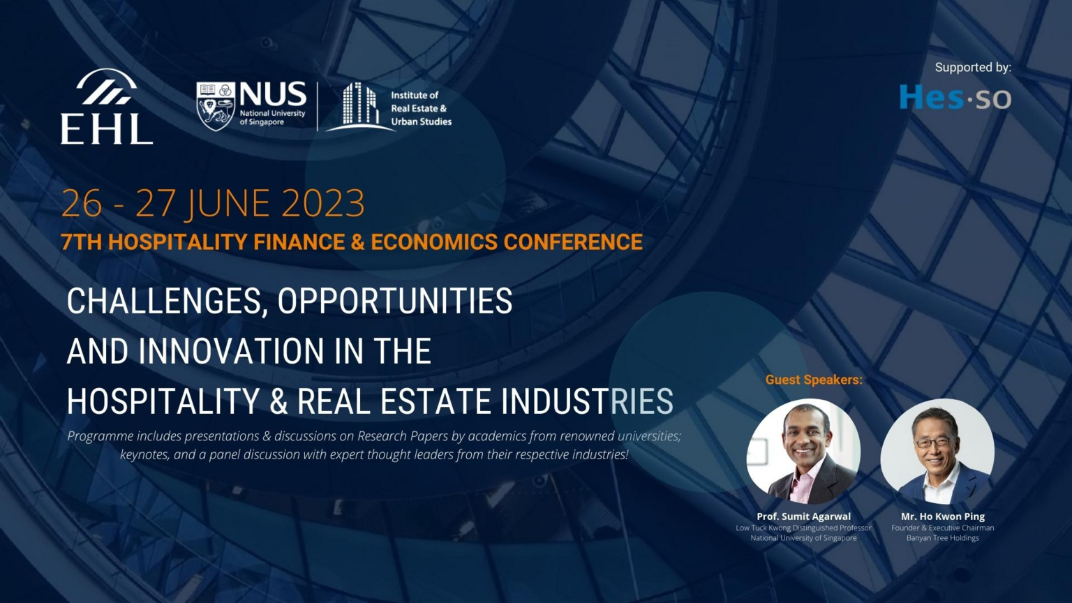 The 7th edition of the Hospitality Finance & Economics (HFE) Conference will take place in Singapore for the first time from 26 – 27 June 2023, and is jointly organised by EHL Campus (Singapore) and the National University of Singapore's Institute of Real Estate & Urban Studies, supported by the HES-SO. The annual HFE Conference is a forum and platform for industry experts and academics in the hospitality finance, economics and real estate fields to gather and share their knowledge and insights to investors, policy makers and consumers in hospitality and beyond.