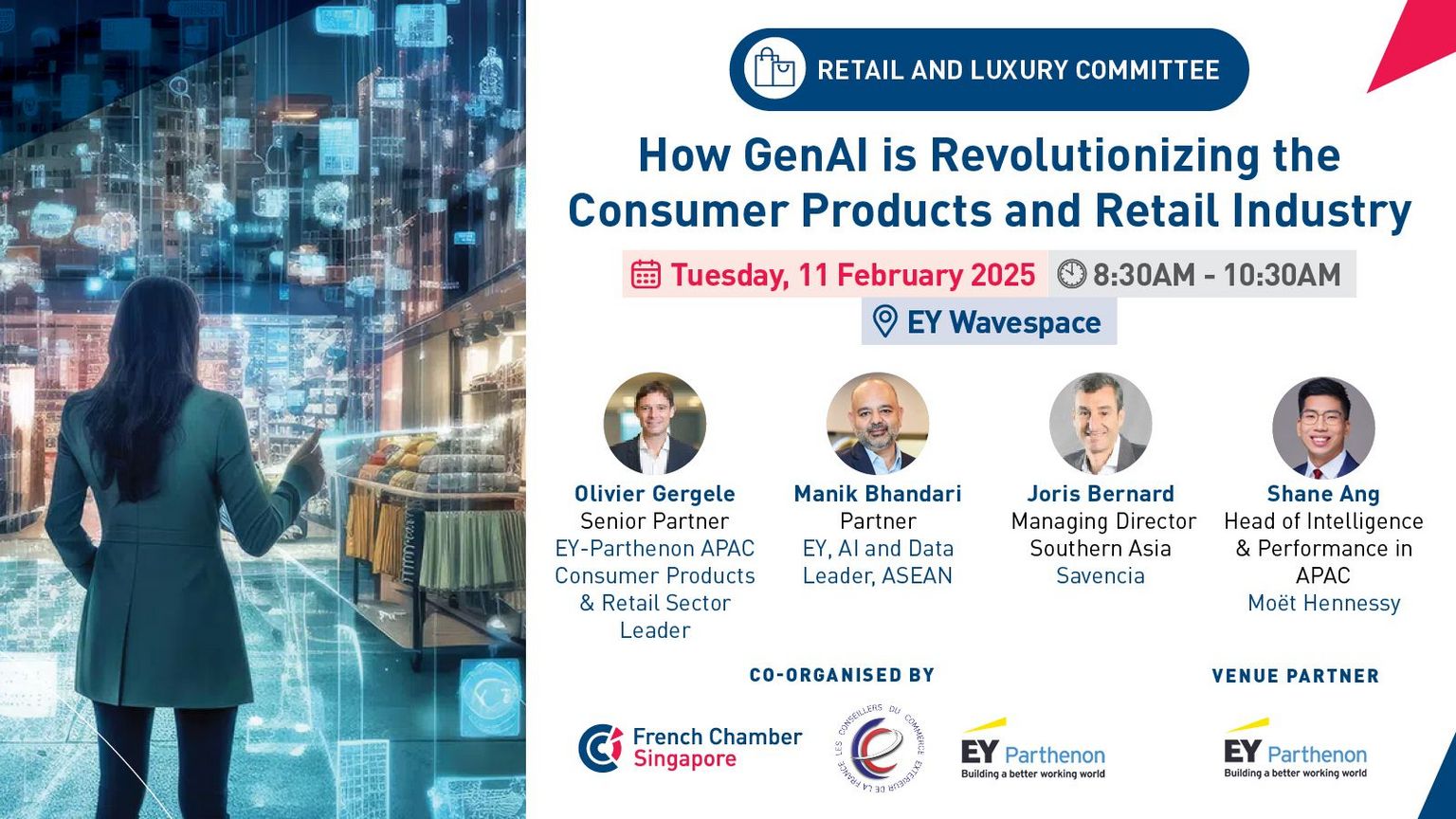 The event will conclude with a networking reception, where you can exchange perspectives with EY leaders and speakers from the consumer industry.