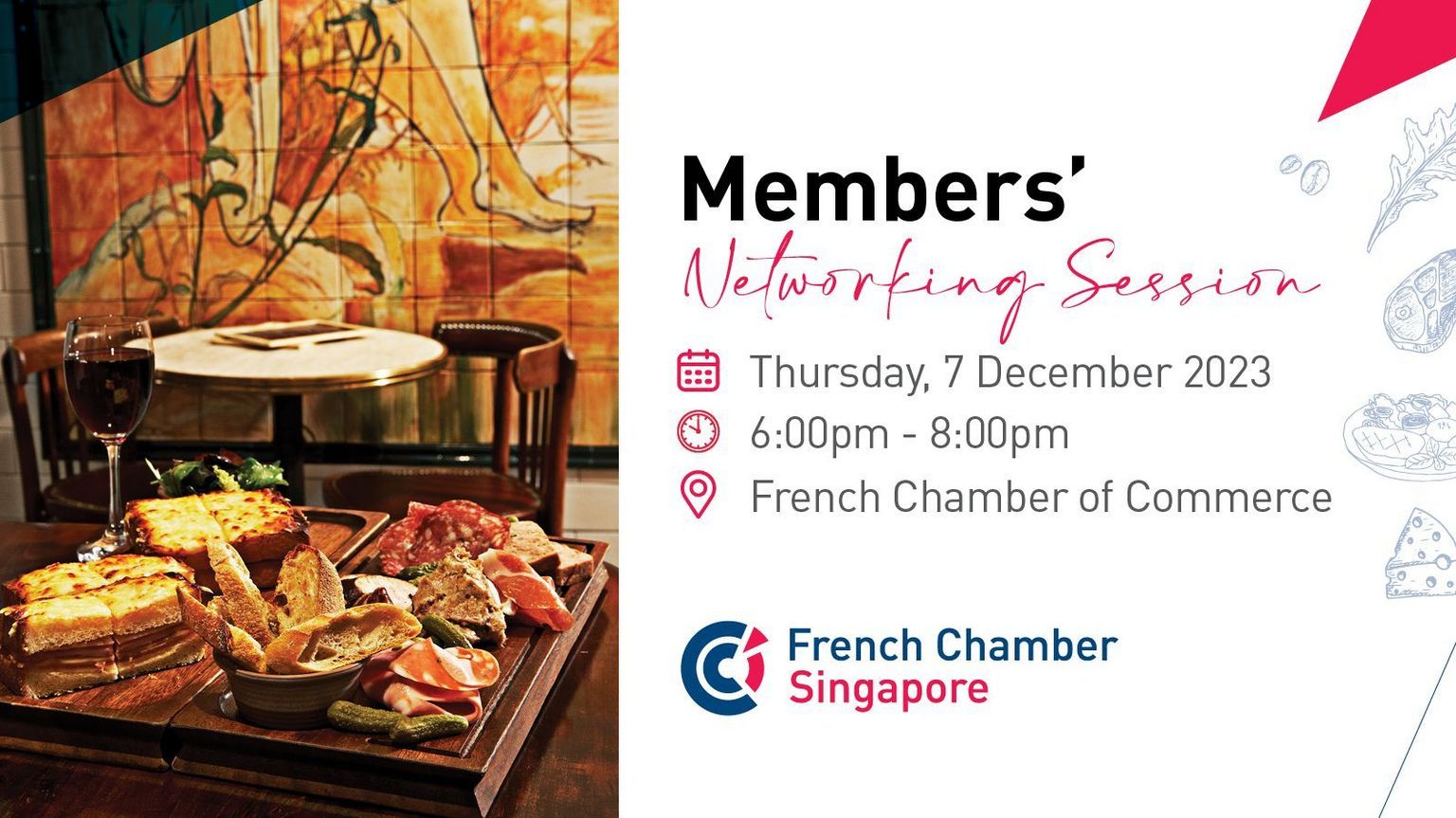 Let's meet at the French Chamber of Commerce to network while enjoying a drink and some dips!