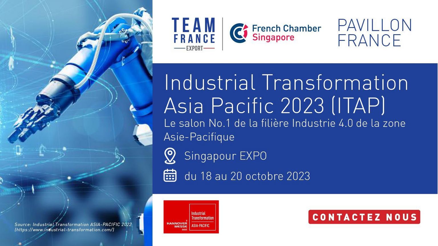 We are delighted to welcome in Singapore the companies exhibiting on the French Pavilion during the 6th edition of Industrial Transformation Asia Pacific (ITAP)from October 18 to 20, 2023.