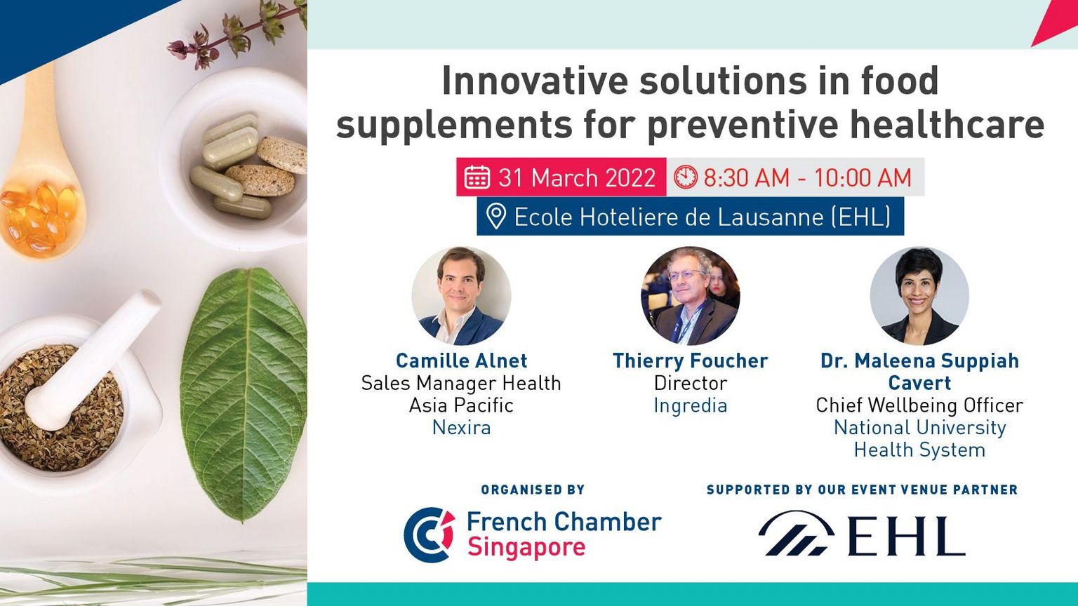 - From 9.00am to 9.45am : Panel discussion to discuss on customer expectations, importance of health/food supplement claims, market growth and challenges and efforts in preventative medicine with Camille Alnet, Thierry Foucher and Dr. Maleena Suppiah Cavert, Chief Wellbeing Officer at National University Health System