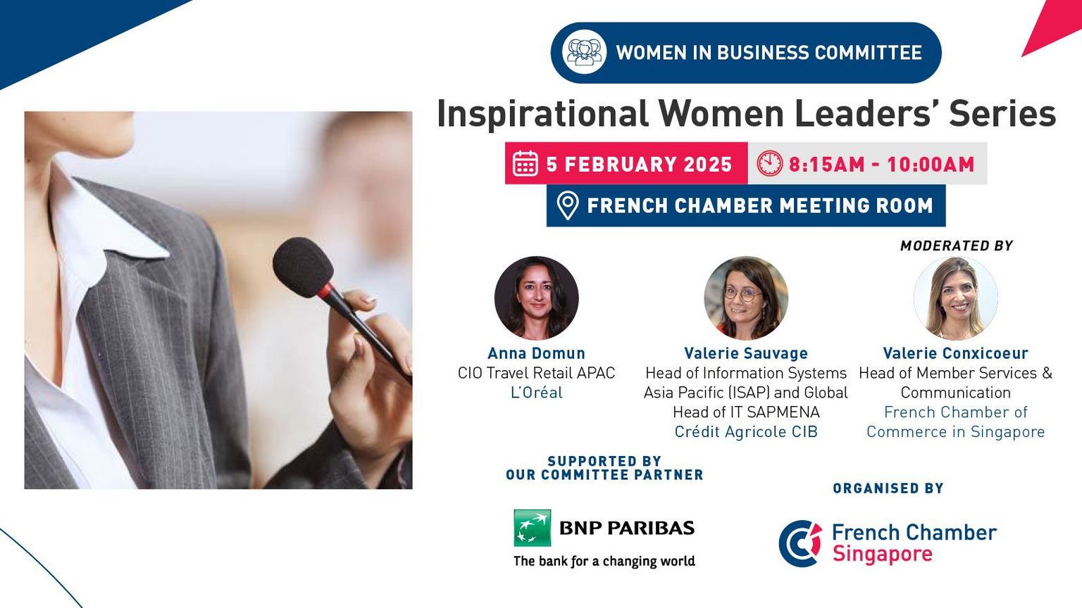 This conversation will be moderated by Valerie Conxicoeur, Head of Member Services and Communication at the French Chamber of Commerce in Singapore