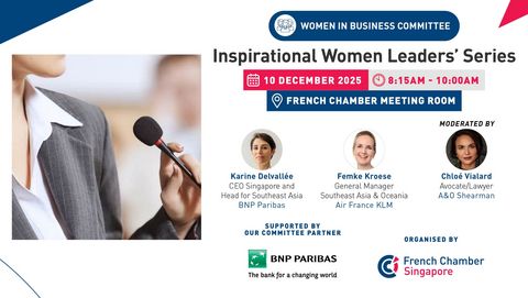 For this 19th edition, we are delighted to welcome Karine Delvallée, CEO Singapore and Head for Southeast Asia at BNP Paribas and Femke Kroese, General Manager Southeast Asia & Oceania at Air France KLM, who will share about their personal experience as executive leaders.