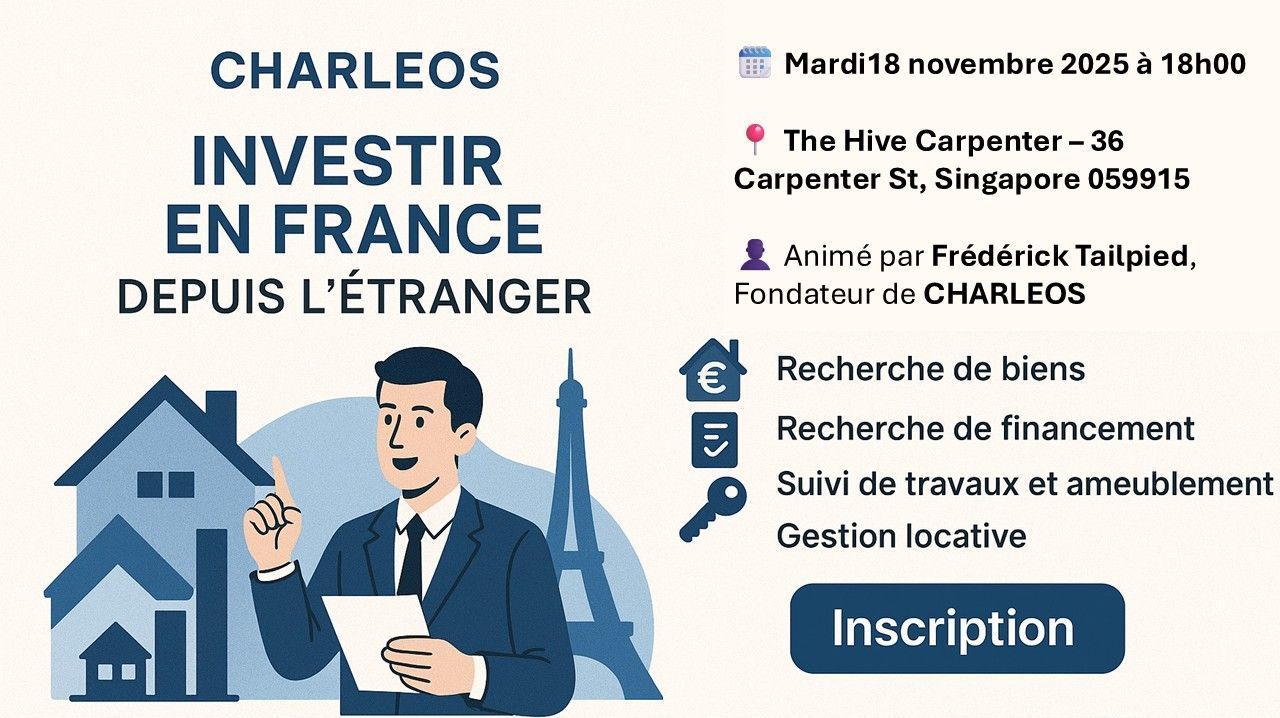 Rejoignez-nous pour une conférence exclusive animée par Frédérick Tailpied, chasseur immobilier et fondateur de CHARLEOS, société française spécialisée dans l’investissement immobilier pour les expatriés et non-résidents.