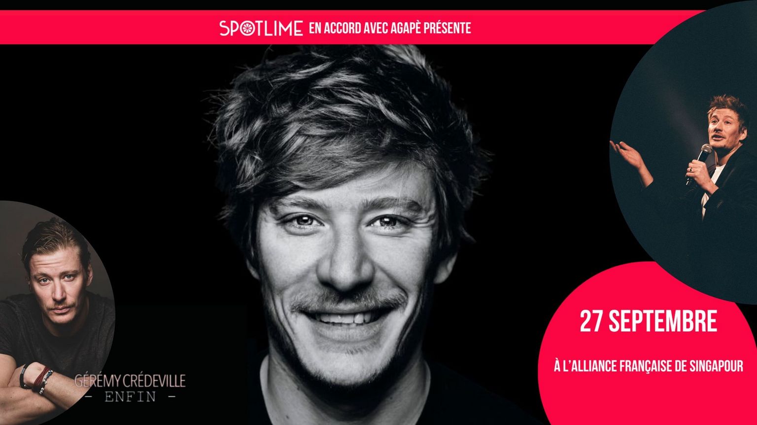 Le prochain rendez-vous est donné la rentrée avec l’humoriste lillois Gérémy Crédeville qui jouera son nouveau spectacle «ENFIN» à l'Alliance Française de Singapour à20h le 27 septembre 2024.