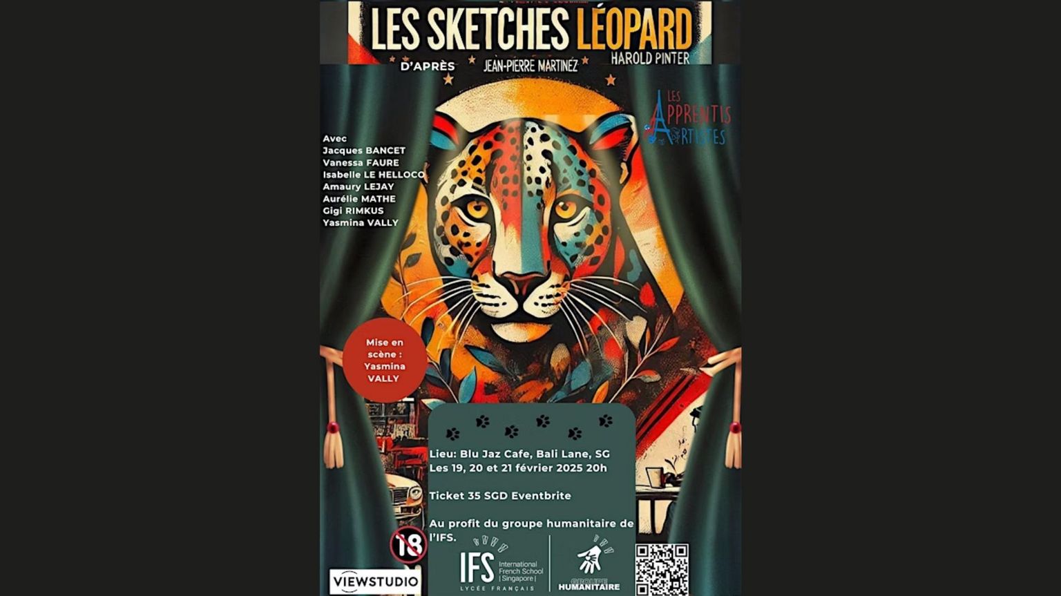Découvrez Les Sketches Léopard, un medley audacieux et irrésistible de sketches signés Pinter et Martinez, présenté en quatre tableaux : Au travail, Dans la rue, À nos amours et Au final. Un spectacle où l’humour piquant et le style café-théâtre s’entrelacent pour vous offrir une soirée mémorable, entre rires et réflexion.