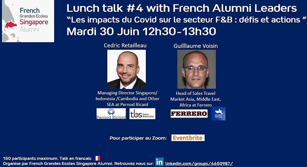 French Grandes Ecoles Singapore Alumni is pleased to invite you next Tuesday 30th of June (12.30pm-1.30pm) to our 4th Lunch Talk with French Alumni Leaders.