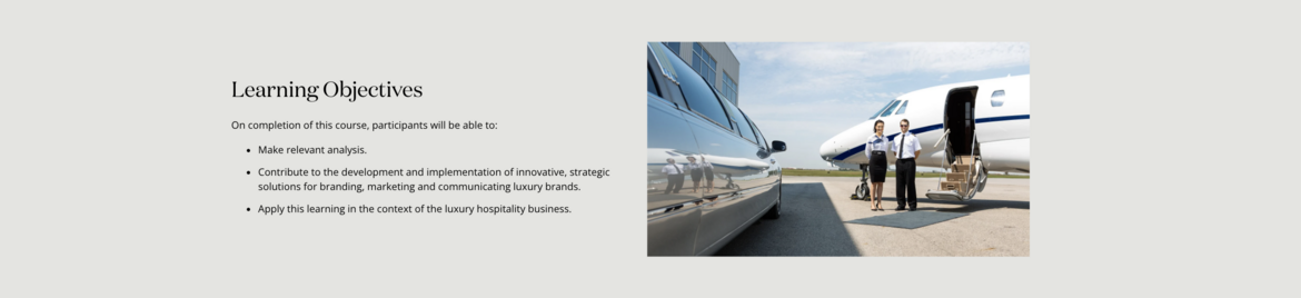 - Apply luxury brand management concepts to the luxury hospitality business.