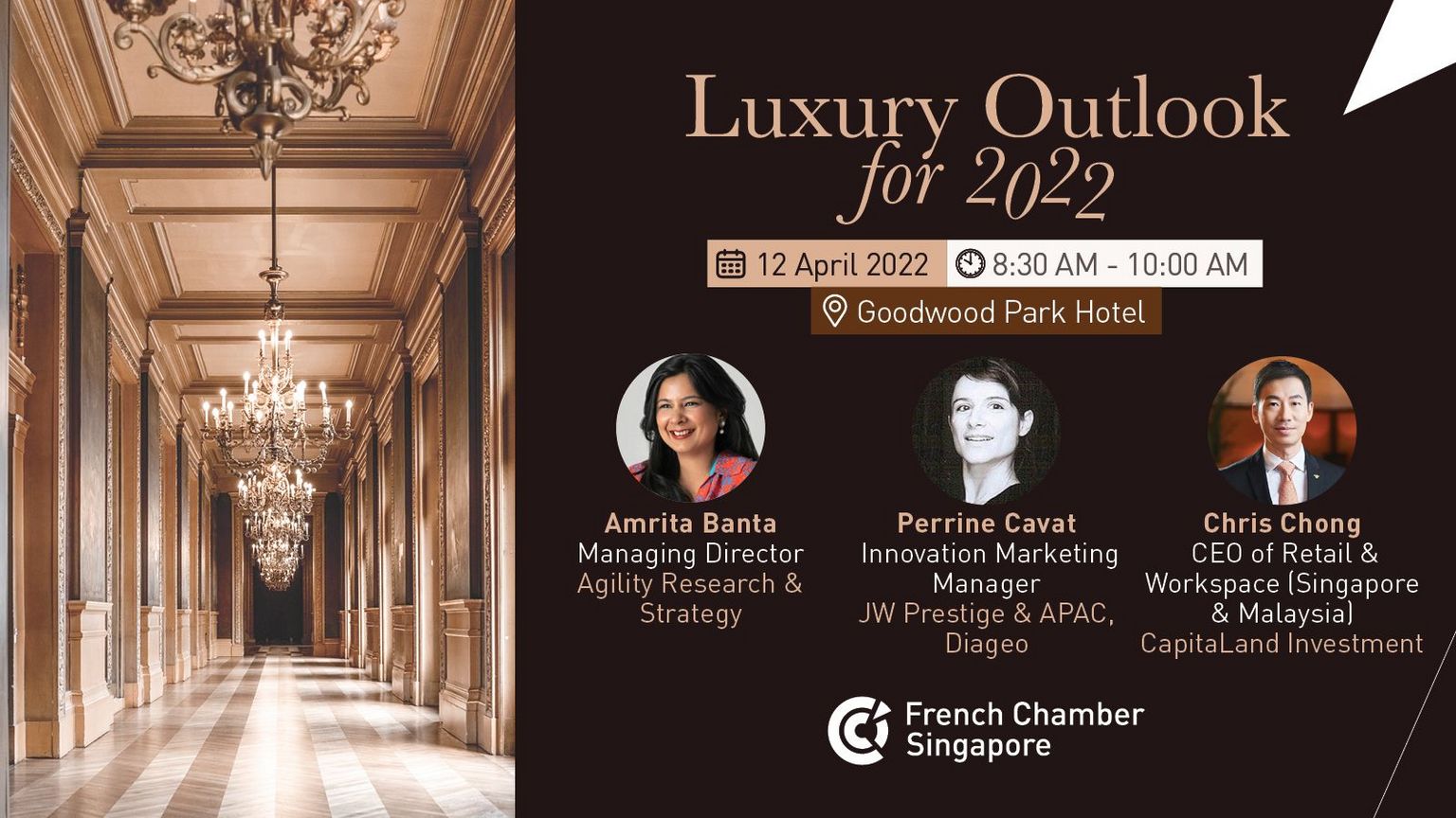 Join Amrita Banta, Managing Director at Agility Research, Perrine Cavat, Innovation Marketing Manager for JW Global Luxury & APAC at Diageo and Chris Chong, CEO of Retail & Workspace (Singapore & Malaysia), CapitaLand Investment, sharing their insights and their views on this Luxury Outlook.