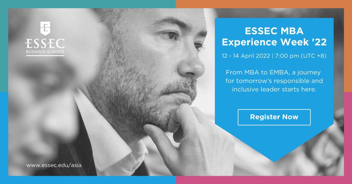 Join us online from 12 to 14 April 2022 to learn how ESSEC’s top-ranked MBA programs can maximize your potential.