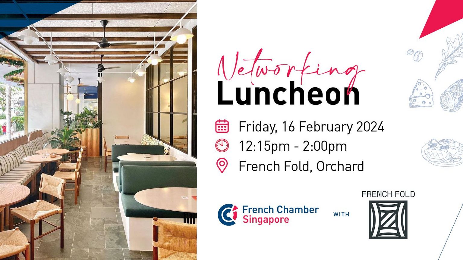 Mark your calendars, because you're cordially invited to our upcoming Networking Luncheon at the charming French Fold in Orchard, on Friday, February 16th!