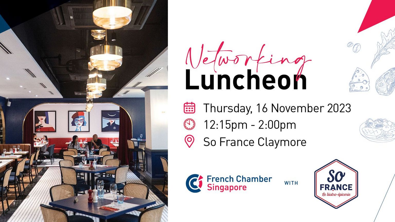 Come and join us for upcoming our Networking Luncheon at SO France, Claymore, on Thursday November 16th.
