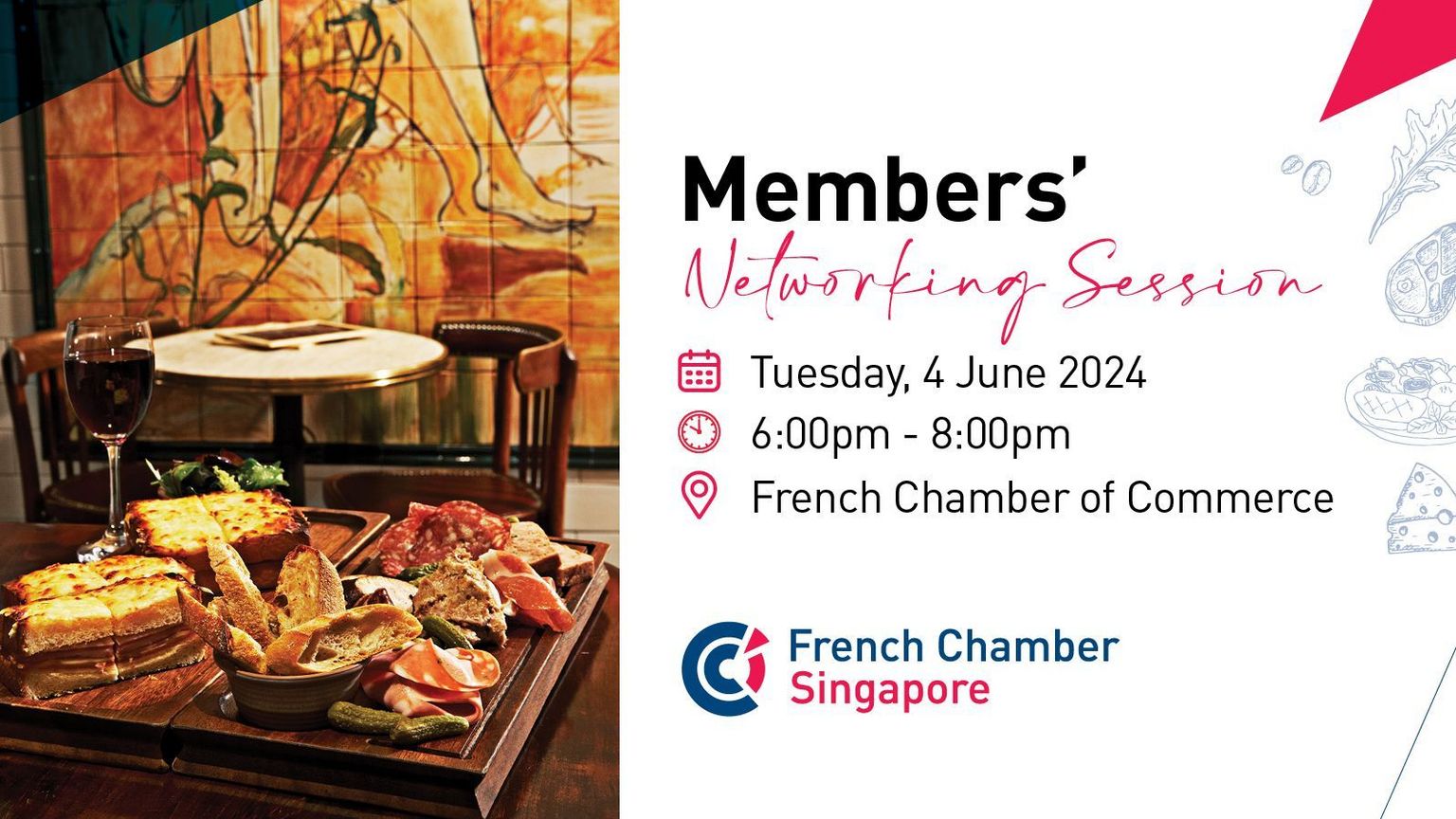 Let's meet at the French Chamber of Commerce to network while enjoying a drink and some dips!