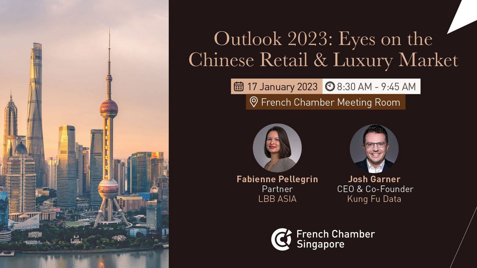 Join our expert panelists Fabienne Pellegrin, Partner at LBB Asia, and Josh Gardner, CEO & Co-Founder at Kung Fu Data, to review 2022 and outlook 2023 for Brands and retailers to perform on the Chinese market.