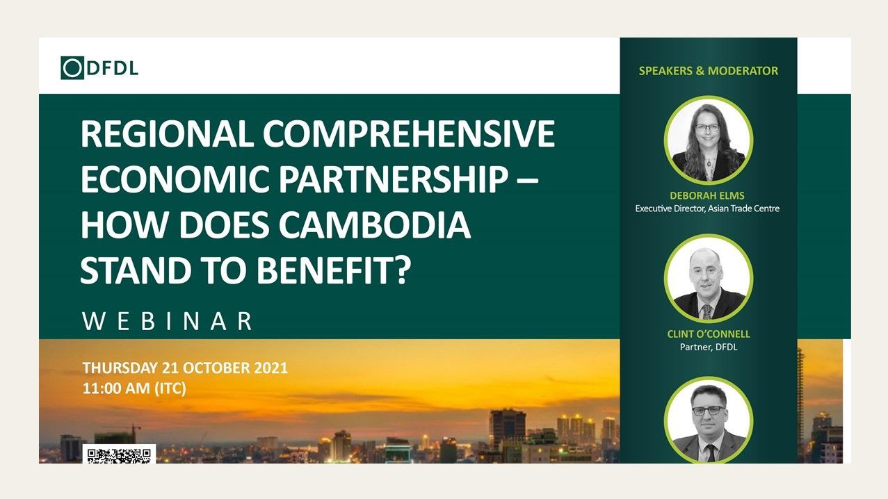 DFDL is pleased to invite you to our exclusive webinar that examines the Regional Comprehensive Economic Partnership (“RCEP”) and how Cambodia stands to be a primary beneficiary when RCEP comes into effect in the coming months.