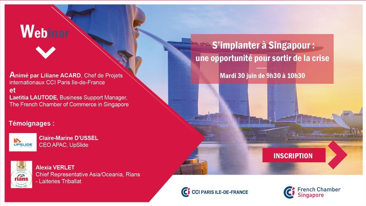 En vous inscrivant à ce webinar, vous acceptez de recevoir de la CCI Ile de France ainsi que de son partenaire sur l'événement, The French Chamber of Commerce in Singapore, des invitations futures pour d'autres événements et des informations marché.