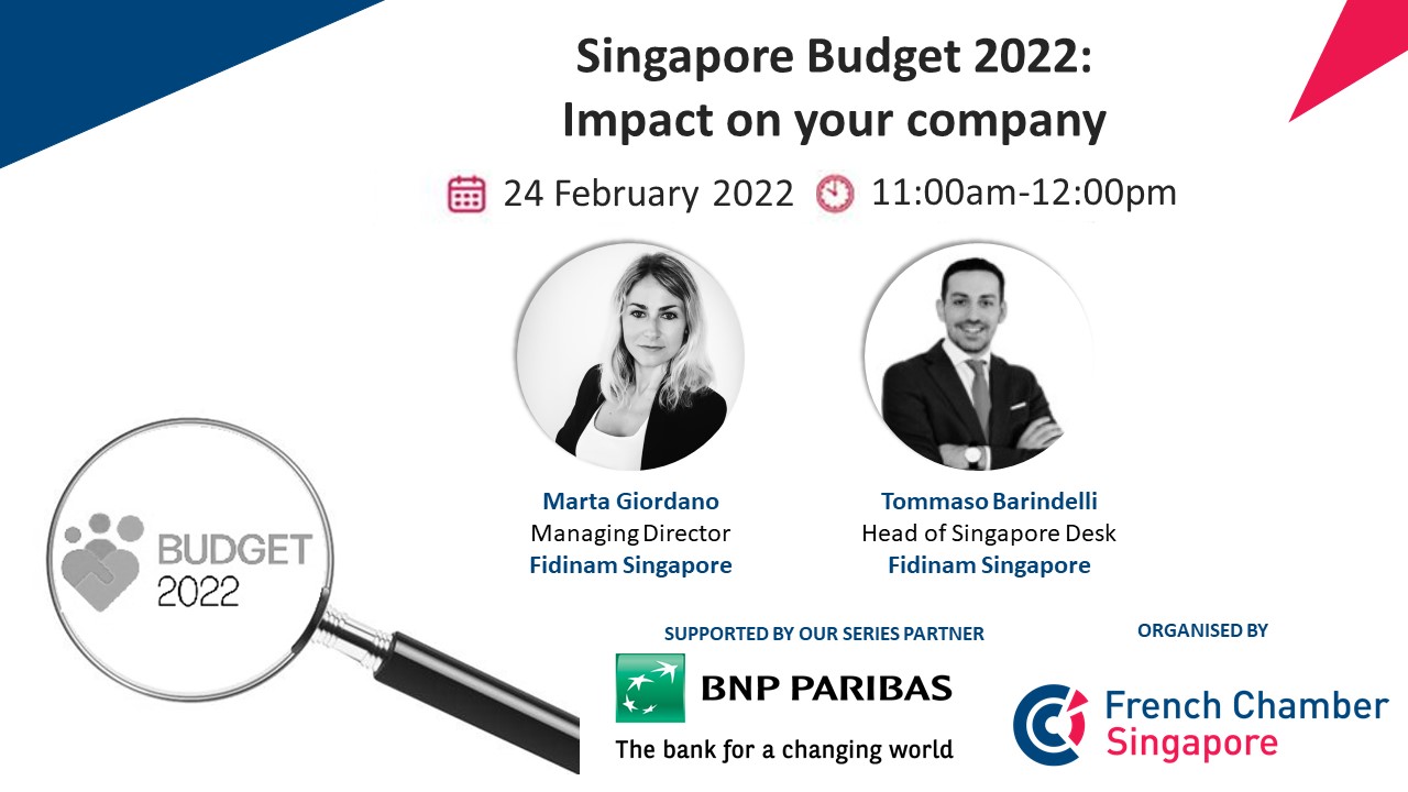 Singapore’s 2022 Budget statement will be delivered by Finance Minister Lawrence Wong on Feb 18. In this webinar, Fidinam professionals will share what the 2022 Budget means for the economic outlook of Singapore and the possible impact on your business plan and execution of your company’s vision.
