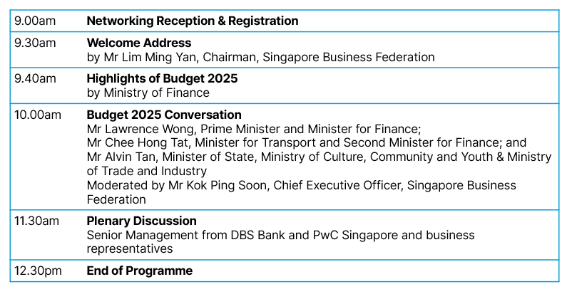 Join the SGBS for insights on Budget 2025 with PM Lawrence Wong and industry leaders.
