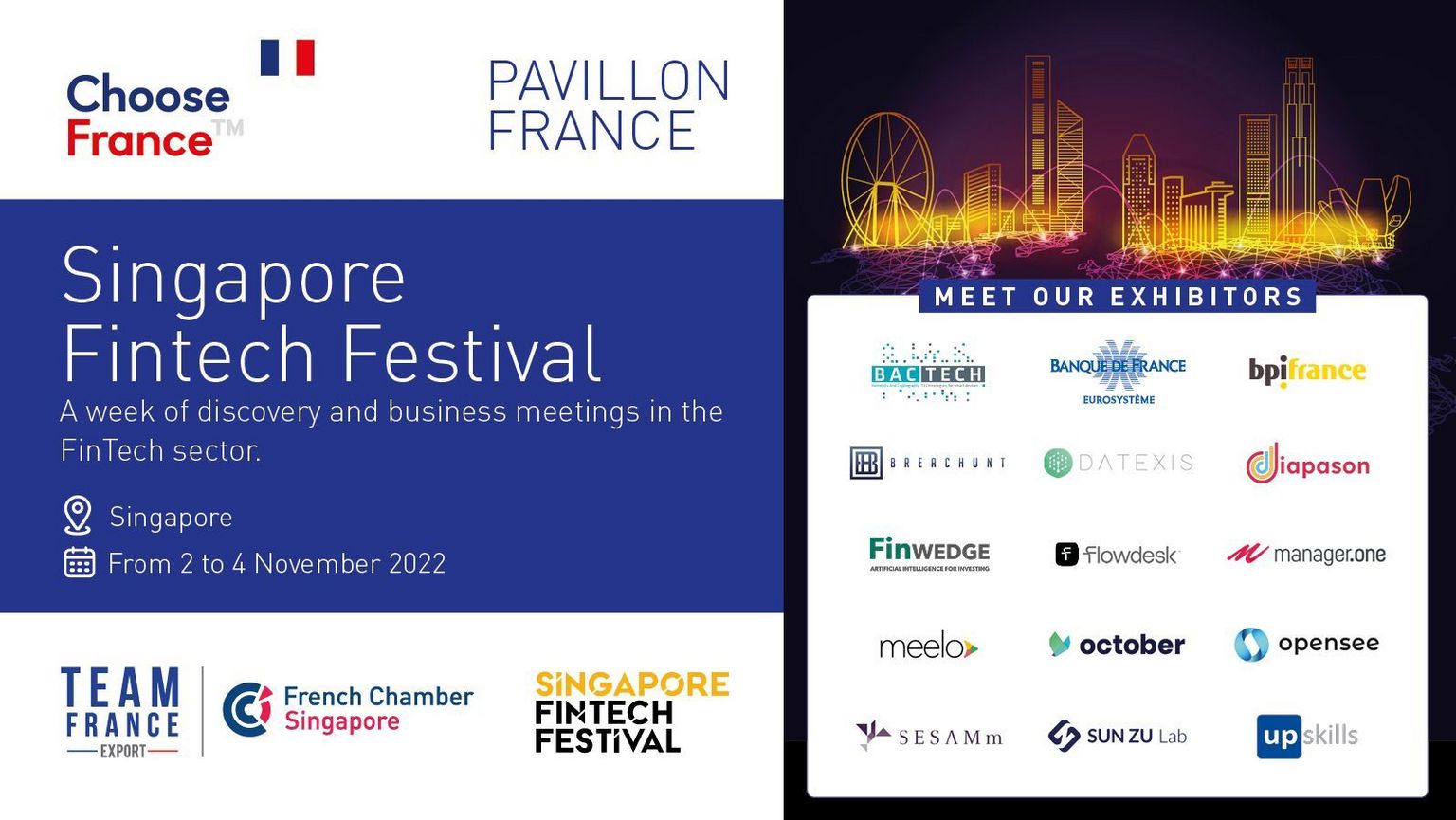 The French Chamber of Commerce in Singapore will be again at the Singapore Fintech Festival 2022 under "Choose France" Pavillon booth no. 5F11.