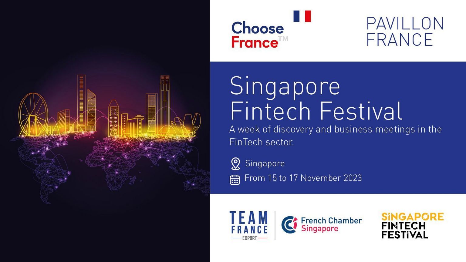 The French Chamber of Singapore - Team France Export will have a physical booth under a French Pavillion Hall 5, 5F23 to showcase innovative Fintech start-ups and their advanced products / services.
