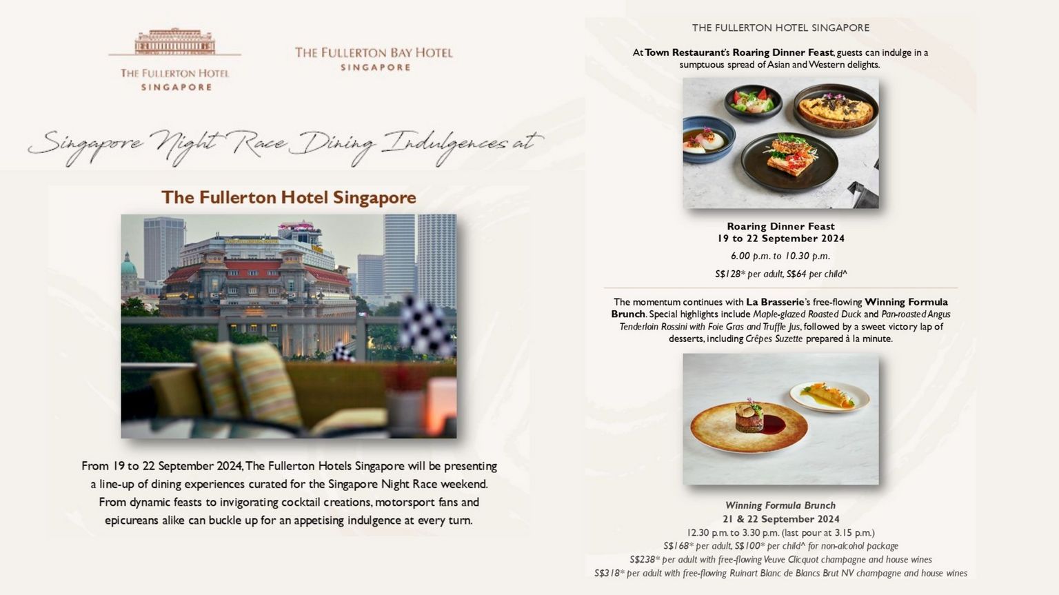 Singapore Night Race Dining Indulgences at Fullerton Hotel Singapore