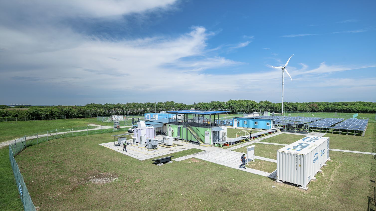 As a state-of-the-art, multi-fluid microgrid solution, it consists of a micro-grid that generates 550 kW of electricity and boasts the largest wind turbine at 100kW that can be found in Singapore as well as a hydrogen full chain for electricity and mobility.