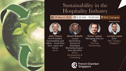 Find out more about their journey of sustainability, their eco-friendly practices across their design, products and services, logistics, supplies, and their challenges, with our guests speakers, John Timson, Vice President Sustainability and Safety - South East Asia, Japan and Korea at Accor, Benoit Badufle from Horus development & Consulting: Luxury Destination, Tourism & Hospitality Marketing Expert - Asia Specialist and, Regional Director of Monaco Tourism Authority, and Olivier Lopion, Managing Director SEA at The Oval Partnership. This conversation will be moderated by Joshua Gan, Regional Director, Asia-Pacific at Ecole Hoteliere de Lausanne.