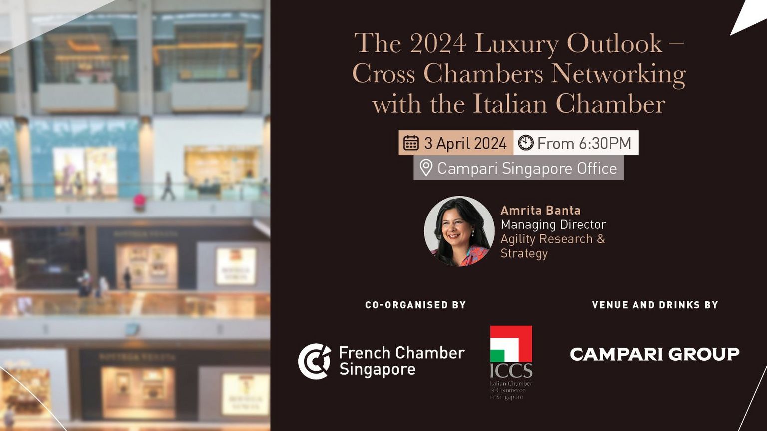 This event, co-hosted by the French Chamber of Commerce and the Italian Chamber of Commerce in Singapore, offers a unique opportunity to: