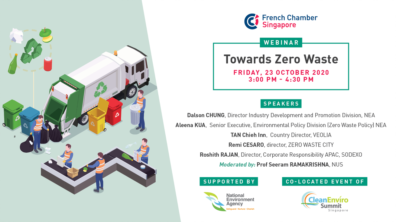 Join this presentation of Singapore's Zero Waste Master Plan followed by a discussion with representatives from NEA, VEOLIA, SODEXO, ZERO WASTE CITY